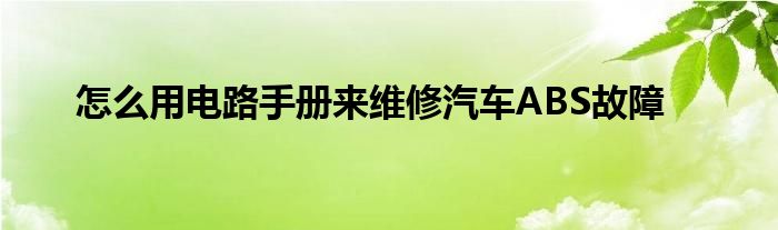 大家好,我是云百科的客服小柏,我來為大家解答以上問題。怎么用電路手冊來維修汽車ABS故障的很多人還不知道,那么怎么用電路手冊來維修汽車ABS故障的問題,我們一起來看看吧!