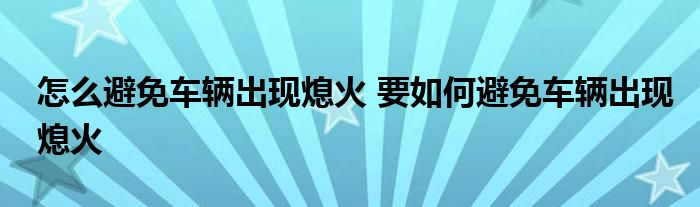 大家好,小美來為大家解答以上問題。怎么避免車輛出現熄火,要如何避免車輛出現熄火很多人還不知道,現在讓我們一起來看看吧!