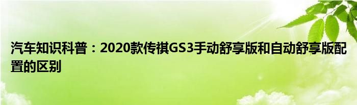 2020款傳祺GS3增加的舒享版有手動和自動擋兩種,在價格上相差一萬元的差價,在配置方面還是有所區(qū)別。如果想要購買新款傳祺GS3的話,不妨了解下。