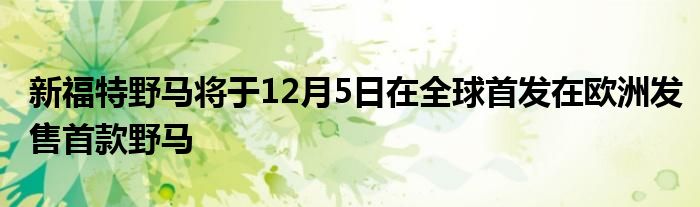 福特汽車(chē)將于12月6日向全球展示下一代野馬,包括巴塞羅那在內(nèi)的六個(gè)城市,歐洲福特汽車(chē)公司將在該市舉行l(wèi)dquo;走下去rdquo;活動(dòng),介紹新的車(chē)輛和技術(shù)。