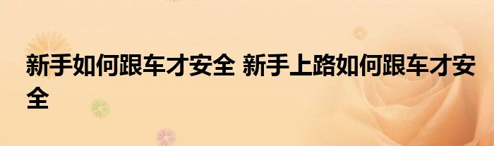 大家好,小美來為大家解答以上問題。新手如何跟車才安全,新手上路如何跟車才安全很多人還不知道,現在讓我們一起來看看吧!