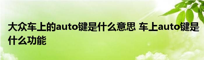 大家好,小態解答以上問題。大眾車上的auto鍵是什么意思,車上auto鍵是什么功能這個很多人還不知道,現在讓我們一起來看看吧!