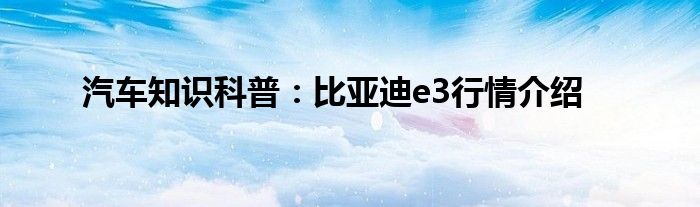 今天來(lái)分享一篇個(gè)人對(duì)汽車知識(shí)科普:比亞迪e3行情介紹相關(guān)分析,眾所周知,無(wú)論是在坊間民眾,還是在汽車媒體的議論中,都是不錯(cuò)的,至于產(chǎn)品到底香不香,通過(guò)測(cè)試還是可以對(duì)汽車知識(shí)科普:比亞迪e3行情介紹的產(chǎn)品力分析分析的,一起來(lái)看看吧:
