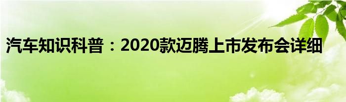 今天來分享一篇個人對汽車知識科普:2020款邁騰上市發布會詳細相關分析,眾所周知,無論是在坊間民眾,還是在汽車媒體的議論中,都是不錯的,至于產品到底香不香,通過測試還是可以對汽車知識科普:2020款邁騰上市發布會詳細的產品力分析分析的,一起來看看吧: