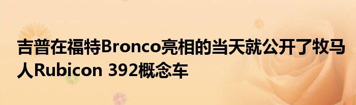 吉普(Jeep)嫉妒福特野馬(Ford Bronco)的注意力,這已經不是什么秘密了。現在,吉普(Jeep)試圖在福特野馬(Bronco)即將發布的那一天宣布推出6.4升V-8驅動的牧馬人Rubicon概念,以吸引福特的注意力。被揭示。為什么現在是V-8牧馬人?因為它正試圖提升其即將成為競爭對手的能力。Bronco發射時不太可能具有V-8動力。