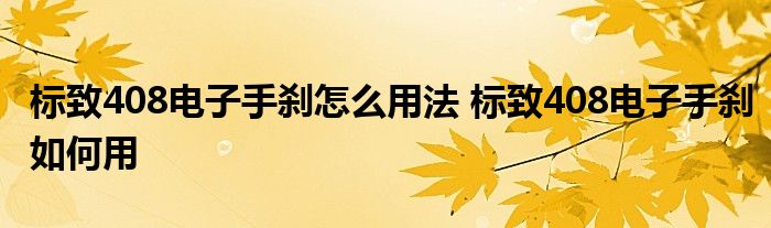 大家好,小美來為大家解答以上問題。標致408電子手剎怎么用法,標致408電子手剎如何用很多人還不知道,現在讓我們一起來看看吧!