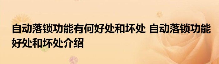 大家好,小美來為大家解答以上問題。自動落鎖功能有何好處和壞處,自動落鎖功能好處和壞處介紹很多人還不知道,現在讓我們一起來看看吧!