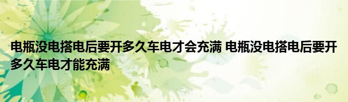 大家好,小美來為大家解答以上問題。電瓶沒電搭電后要開多久車電才會充滿,電瓶沒電搭電后要開多久車電才能充滿很多人還不知道,現在讓我們一起來看看吧!
