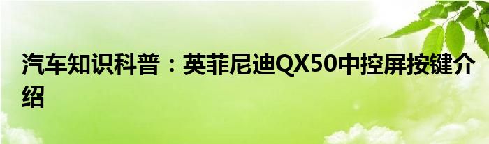 今天來分享一篇個人對汽車知識科普:英菲尼迪QX50中控屏按鍵介紹相關分析,眾所周知,無論是在坊間民眾,還是在汽車媒體的議論中,都是不錯的,至于產品到底香不香,通過測試還是可以對汽車知識科普:英菲尼迪QX50中控屏按鍵介紹的產品力分析分析的,一起來看看吧: