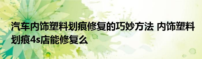 大家好,小態解答以上問題。汽車內飾塑料劃痕修復的巧妙方法,內飾塑料劃痕4s店能修復么這個很多人還不知道,現在讓我們一起來看看吧!