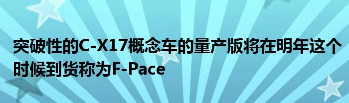 捷豹已經宣布,突破性的C-X17概念車的量產版將在明年這個時候到貨,稱為F-Pace。F-PACE名稱的靈感來自傳說中的F-TYPE,據捷豹稱,這是性能,樣式和實用性之間完美平衡的判斷標準。