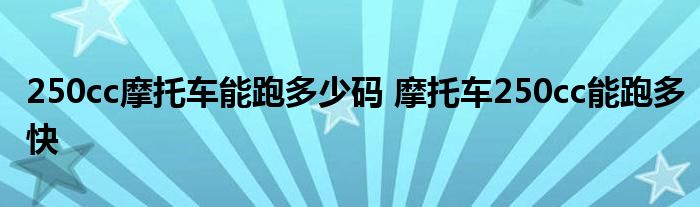 大家好,小態(tài)解答以上問題。250cc摩托車能跑多少碼,摩托車250cc能跑多快這個很多人還不知道,現(xiàn)在讓我們一起來看看吧!