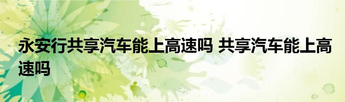 大家好,小態(tài)解答以上問題。永安行共享汽車能上高速嗎,共享汽車能上高速嗎這個(gè)很多人還不知道,現(xiàn)在讓我們一起來(lái)看看吧!