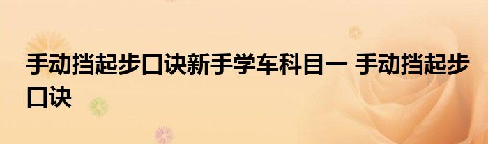 大家好,小態(tài)解答以上問題。手動擋起步口訣新手學(xué)車科目一,手動擋起步口訣這個很多人還不知道,現(xiàn)在讓我們一起來看看吧!
