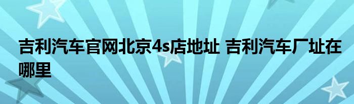 大家好,小態(tài)解答以上問題。吉利汽車官網(wǎng)北京4s店地址,吉利汽車廠址在哪里這個很多人還不知道,現(xiàn)在讓我們一起來看看吧!