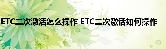 大家好,小美來為大家解答以上問題。ETC二次激活怎么操作,ETC二次激活如何操作很多人還不知道,現在讓我們一起來看看吧!