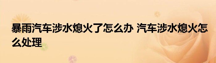 大家好,小態解答以上問題。暴雨汽車涉水熄火了怎么辦,汽車涉水熄火怎么處理這個很多人還不知道,現在讓我們一起來看看吧!