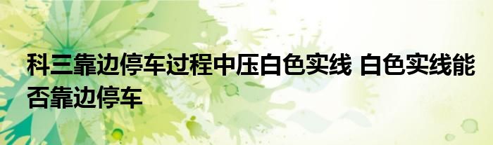 大家好,小態(tài)解答以上問題。科三靠邊停車過程中壓白色實線,白色實線能否靠邊停車這個很多人還不知道,現(xiàn)在讓我們一起來看看吧!