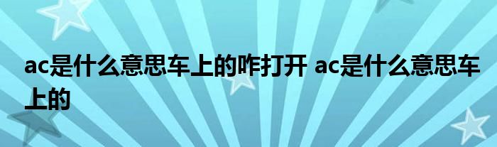 大家好,小態(tài)解答以上問題。ac是什么意思車上的咋打開,ac是什么意思車上的這個(gè)很多人還不知道,現(xiàn)在讓我們一起來看看吧!