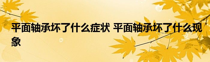 大家好,小態解答以上問題。平面軸承壞了什么癥狀,平面軸承壞了什么現象這個很多人還不知道,現在讓我們一起來看看吧!