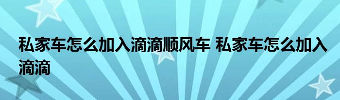 大家好,小態解答以上問題。私家車怎么加入滴滴順風車,私家車怎么加入滴滴這個很多人還不知道,現在讓我們一起來看看吧!
