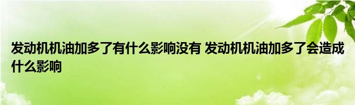 大家好,小態解答以上問題。發動機機油加多了有什么影響沒有,發動機機油加多了會造成什么影響這個很多人還不知道,現在讓我們一起來看看吧!