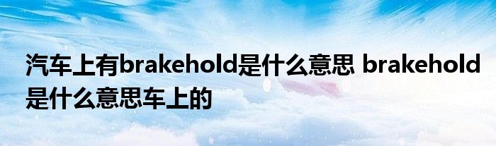 大家好,小態解答以上問題。汽車上有brakehold是什么意思,brakehold是什么意思車上的這個很多人還不知道,現在讓我們一起來看看吧!