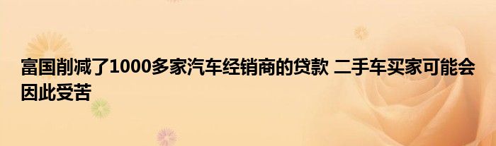 富國與約11,000個(gè)經(jīng)銷店開展業(yè)務(wù),并告訴C / D它的新政策對這些關(guān)系的影響不到10%。富國在這些關(guān)系中不直接與經(jīng)銷商打交道,而是向購車者自己借錢。隨著政策的變化,富國與之建立聯(lián)系的獨(dú)立經(jīng)銷商的購車者將不再能夠從該公司獲得貸款。當(dāng)然,這些客戶仍然可以從其他貸方獲得融資,但是如果購物者必須在未與經(jīng)銷商達(dá)成協(xié)議的尋求貸款,則這種改變可能會增加一個(gè)步驟。否則,如果經(jīng)銷商使用多個(gè)貸方并簡單地將新的貸款申請發(fā)送給與其有關(guān)系的另一貸方,則該更改可能根本不會引起購物者的注意。