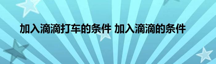 大家好,小態(tài)解答以上問題。加入滴滴打車的條件,加入滴滴的條件這個很多人還不知道,現(xiàn)在讓我們一起來看看吧!