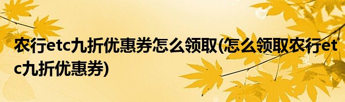 大家好,小美來為大家解答以上問題。農(nóng)行etc九折優(yōu)惠券怎么領(lǐng)取,怎么領(lǐng)取農(nóng)行etc九折優(yōu)惠券很多人還不知道,現(xiàn)在讓我們一起來看看吧!
