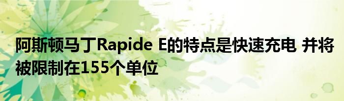 阿斯頓馬丁RapideE的生產將在全球155個單位進行。
