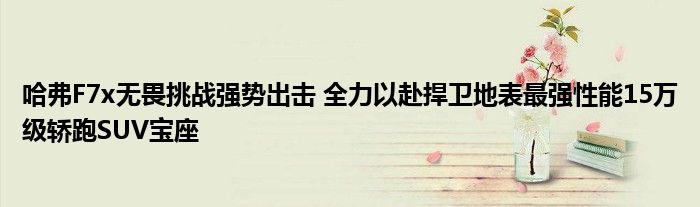 事實(shí)上,即將拉開帷幕的加速王者挑戰(zhàn)賽只是哈弗F7x成為“地表最強(qiáng)15萬級(jí)轎跑SUV”的其中一步,從去年11月開始,哈弗F7x便已開啟王者挑戰(zhàn)之旅。