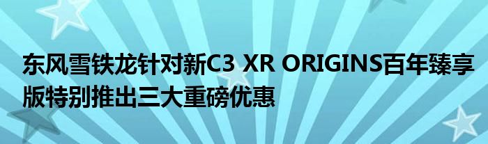 【編者按】新C3-XR ORIGINS百年臻享版自上市以來,受到了很多消費者的熱愛與稱贊。濃情5月,為感謝回饋廣大消費者,東風雪鐵龍針對新C3-XR ORIGINS百年臻享版特別推出“1元首付”、“延期還款”、“低至8折購車”三大重磅優惠,讓年輕家庭購車一步到位。
