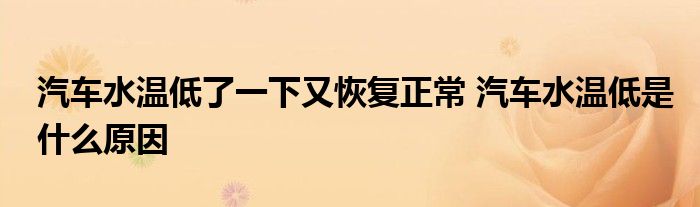 大家好,小態解答以上問題。汽車水溫低了一下又恢復正常,汽車水溫低是什么原因這個很多人還不知道,現在讓我們一起來看看吧!