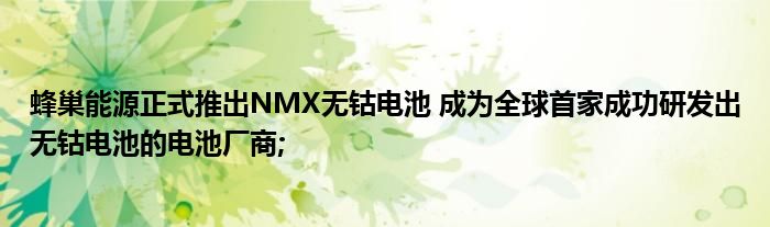 蜂巢能源正式推出NMX無鈷電池,成為全球首家成功研發出無鈷電池的電池廠商;