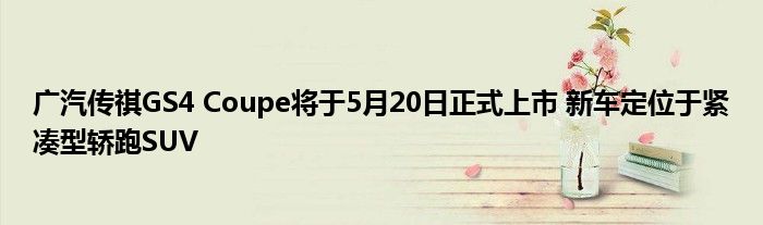 廣汽傳祺GS4 Coupe將于5月20日正式上市,新車定位于緊湊型轎跑SUV。