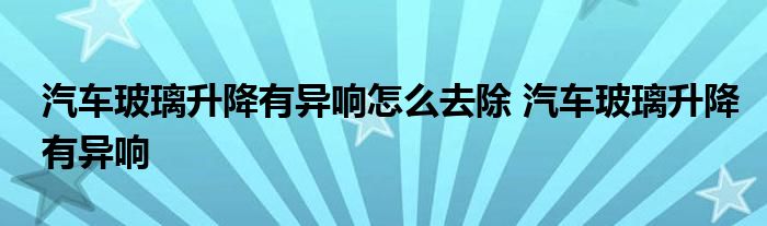 大家好,小態解答以上問題。汽車玻璃升降有異響怎么去除,汽車玻璃升降有異響這個很多人還不知道,現在讓我們一起來看看吧!