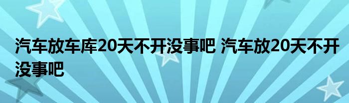 大家好,小態(tài)解答以上問題。汽車放車庫20天不開沒事吧,汽車放20天不開沒事吧這個(gè)很多人還不知道,現(xiàn)在讓我們一起來看看吧!