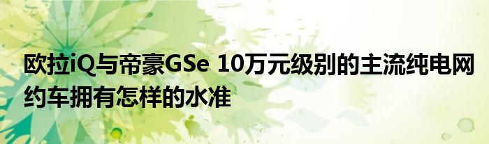 動力續航:歐拉iQ的合理和帝豪GSe的合規