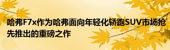 然而,隨著近年來汽車產(chǎn)業(yè)取得長足發(fā)展,頭部的車企正在技術(shù)領(lǐng)域迎頭趕上,一些打破性能質(zhì)疑的產(chǎn)品也在不斷涌現(xiàn)。哈弗F7x作為哈弗面向年輕化轎跑SUV市場搶先推出的重磅之作,無疑在兼具空間實用性與設(shè)計美學的基礎(chǔ)上,進一步實現(xiàn)了SUV性能的突破,正以出類拔萃的性能實力,刮起一股轎跑SUV的極速浪潮。