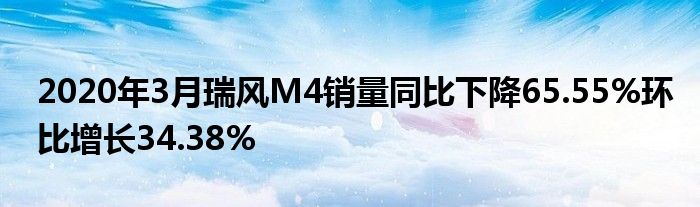 2020年3月,瑞風M4銷量同比下降65.55%,環比增長34.38%;最近12個月中,瑞風M4銷量在2019年10月達到最高,銷量為1243輛。