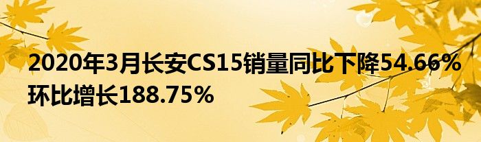 2020年3月,長安CS15銷量同比下降54.66%,環比增長188.75%;最近12個月中,長安CS15銷量在2019年5月達到最高,銷量為2186輛。