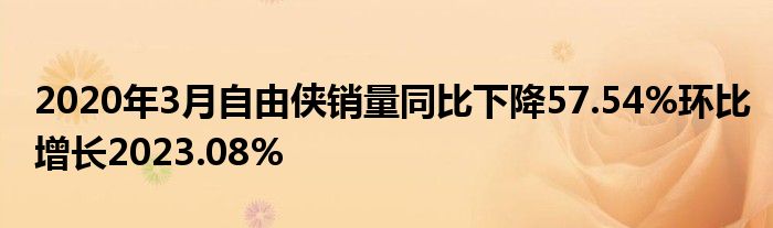2020年3月,自由俠銷量同比下降57.54%,環比增長2023.08%;最近12個月中,自由俠銷量在2019年12月達到最高,銷量為919輛。