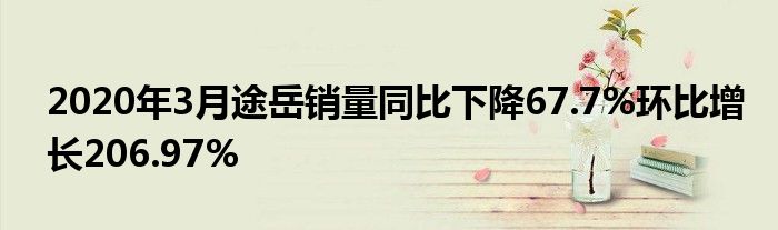 2020年3月,途岳銷量同比下降67.7%,環比增長206.97%;最近12個月中,途岳銷量在2019年12月達到最高,銷量為18740輛。