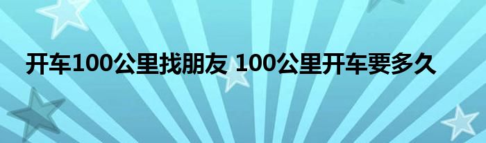大家好,小態解答以上問題。開車100公里找朋友,100公里開車要多久這個很多人還不知道,現在讓我們一起來看看吧!