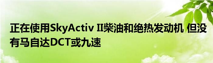 最近小茹姐發(fā)現(xiàn)正在使用SkyActiv II柴油和絕熱發(fā)動(dòng)機(jī) 但沒有馬自達(dá)DCT或九速這個(gè)話題相信很多小伙伴們都很感興趣吧,那么今天就帶大家了解下正在使用SkyActiv II柴油和絕熱發(fā)動(dòng)機(jī) 但沒有馬自達(dá)DCT或九速的具體詳情,那么小茹姐就來(lái)給大家說(shuō)說(shuō)具體的一些問(wèn)題吧,希望對(duì)大家有所幫助。