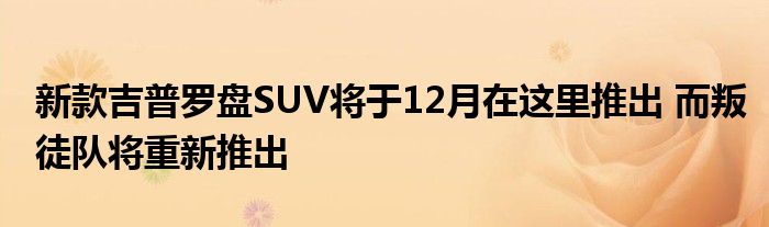 最近小茹姐發現新款吉普羅盤SUV將于12月在這里推出 而叛徒隊將重新推出這個話題相信很多小伙伴們都很感興趣吧,那么今天就帶大家了解下新款吉普羅盤SUV將于12月在這里推出 而叛徒隊將重新推出的具體詳情,那么小茹姐就來給大家說說具體的一些問題吧,希望對大家有所幫助。