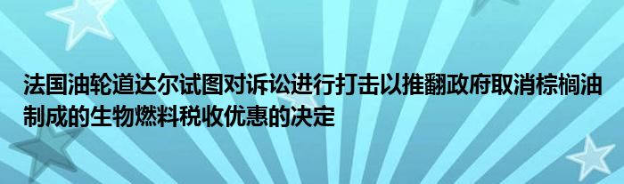 法國油輪道達爾(Total)試圖對訴訟進行打擊,以推翻政府取消棕櫚油制成的生物燃料稅收優惠的決定。道達爾被憲法委員會拒絕。拉梅德(LaMède)的煉油廠可能會遭受后果...