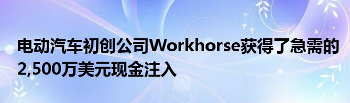 電動卡車制造商Workhorse從投資者那里獲得了2,500萬美元的新資金。這家總部位于辛辛那提的公司最近遇到了一些財務困難,最近發現它正在與通用汽車公司談判,收購該汽車制造商在俄亥俄州閑置的工廠。