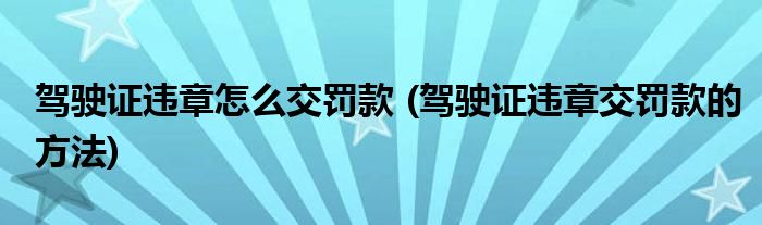 大家好,小美來(lái)為大家解答以上問(wèn)題。駕駛證違章怎么交罰款,駕駛證違章交罰款的方法很多人還不知道,現(xiàn)在讓我們一起來(lái)看看吧!